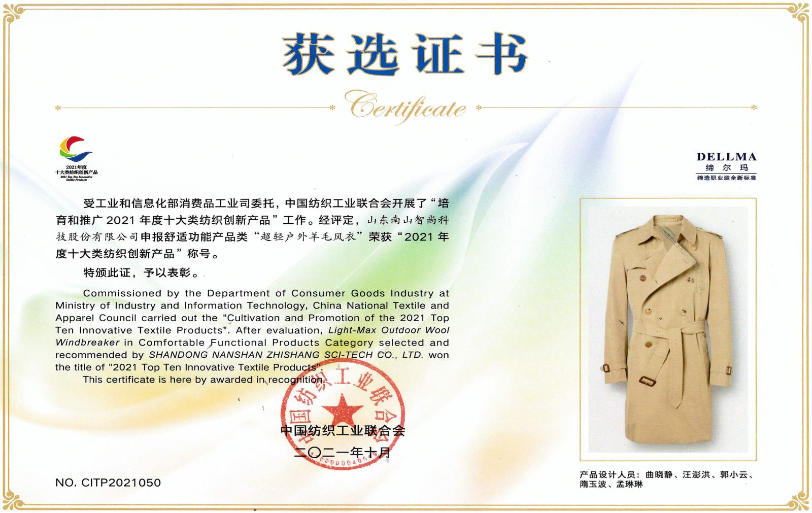 “生態(tài)環(huán)保技術(shù)應(yīng)用獎(jiǎng)”注重在紡、織、染、整等環(huán)節(jié)中,著重考察面料所展現(xiàn)出的穩(wěn)定、突出、環(huán)保的工藝技術(shù)。南山智尚的原色戶(hù)外防護(hù)花呢面料,從近420家面料企業(yè)的2700余款優(yōu)質(zhì)面料中脫穎而出,榮獲大賽一等獎(jiǎng)。