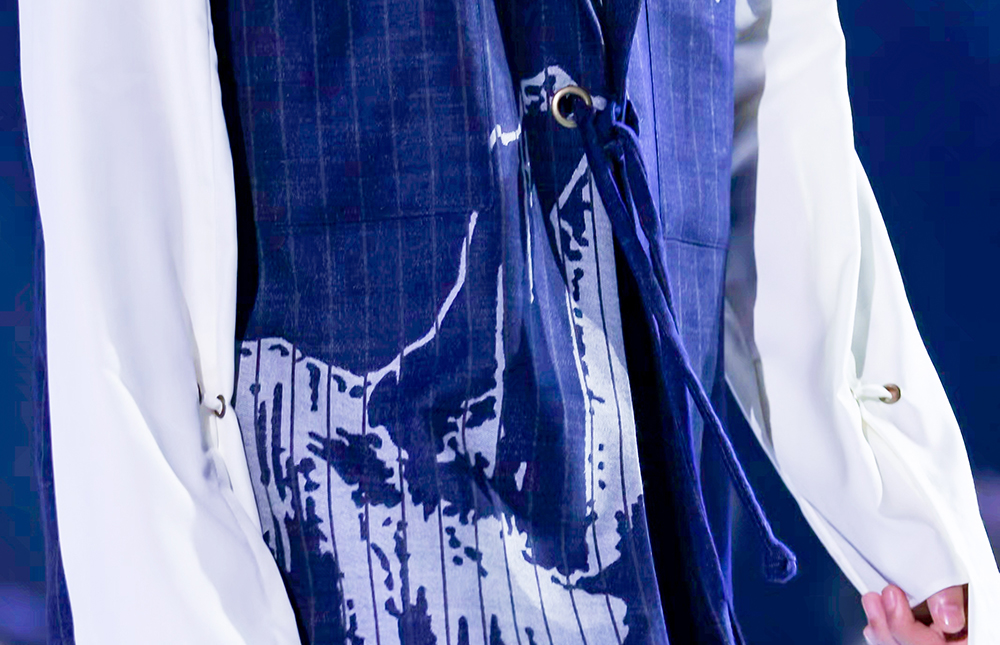 南山智尚可貴之處不僅僅是面料和色彩的創(chuàng)意,更在于從性能科技、工藝面料、設(shè)計(jì)研發(fā)等多重維度,拓展精紡羊毛的多場(chǎng)景應(yīng)用。秉承“時(shí)尚、科技、綠色、人文”的可持續(xù)發(fā)展理念,此次南山智尚以織物本身豐富的結(jié)構(gòu)層次來(lái)表達(dá)中國(guó)形態(tài)美學(xué)的沉穩(wěn)大氣印象,詮釋品牌始終源于自然、回歸自然,并與之和諧共生的產(chǎn)品理念,展現(xiàn)了一種全新的時(shí)尚表達(dá)。