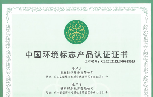 魯泰紡織公司-中國(guó)環(huán)境標(biāo)志產(chǎn)品認(rèn)證證書(shū)